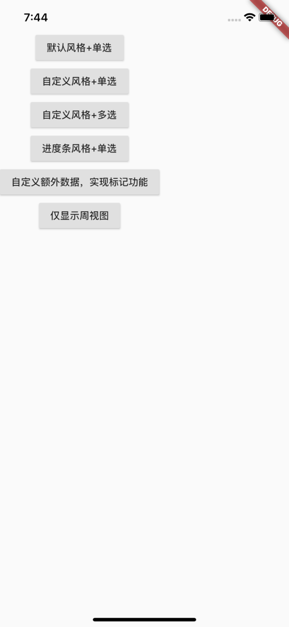 包括自定义WeekBar、自定义日历Item,默认使用的都是DefaultXXXWidget。