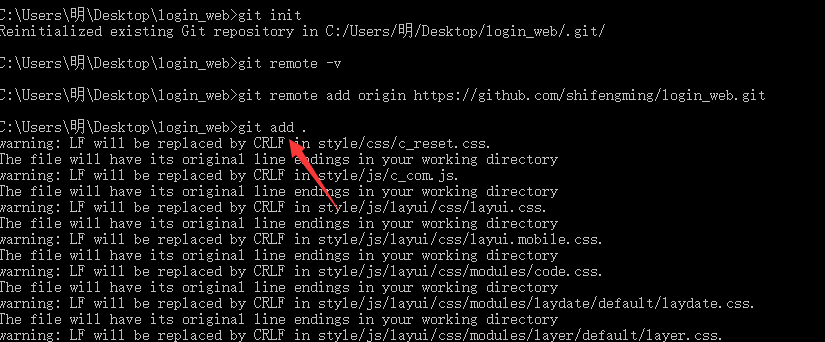 在本地项目的根目录下输入,这个是将本地项目与远程的git仓库关联起来