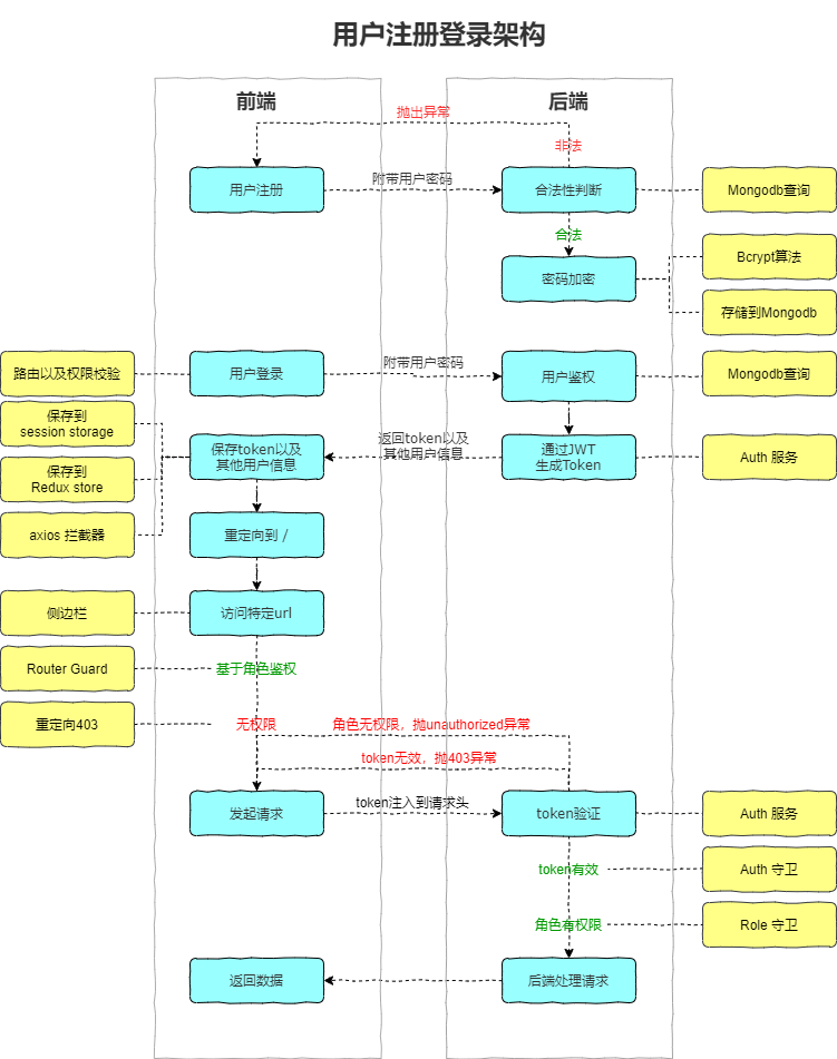 本项目前端基于 CRA 搭建,技术栈涉及 es6+, react, react-router, react-redux(以及 redux-devTools, redux-thunk, react-persist 等中间件),axios 和 ant design of react,sass, CSS Module 等等,后端基于 nest-cli 搭建,技术栈涉及 Typescript, nest.js 及其中间件,mongodb, mongoose, rxjs 等等,运维涉及 MEAN 环境搭建(涉及到 Nginx 的偏多),PM2 部署 node 应用。