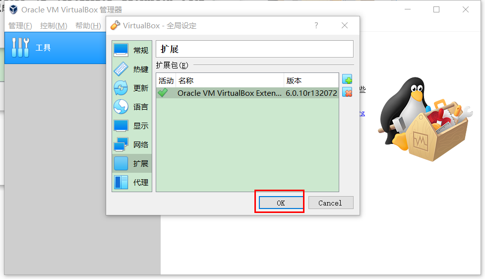 VirtualBox的一些高级特性依赖于VirtualBox Extension Pack,接下来我们安装它。